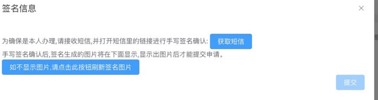 3、上一步点击确认之后,会出现签名信息页面,点击获取信息,经纪人手机上会收到一条短信,点进去之后会要求经纪人进行电子签名,签名完成之后,